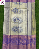 Kanjivaram Plain Silk Saree Violet with rich Pallu and long zari woven birds design border