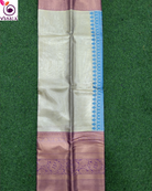 Viska Zari Tissue Plain Saree with rich blue Pallu and light purple long zari woven border
