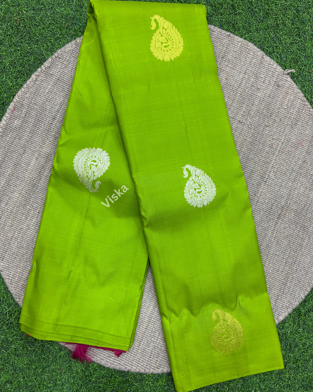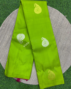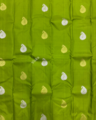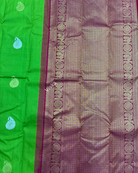 Pure Kanchipuram Silk Saree Parrot Green with all-over buttas in Borderless Style