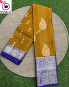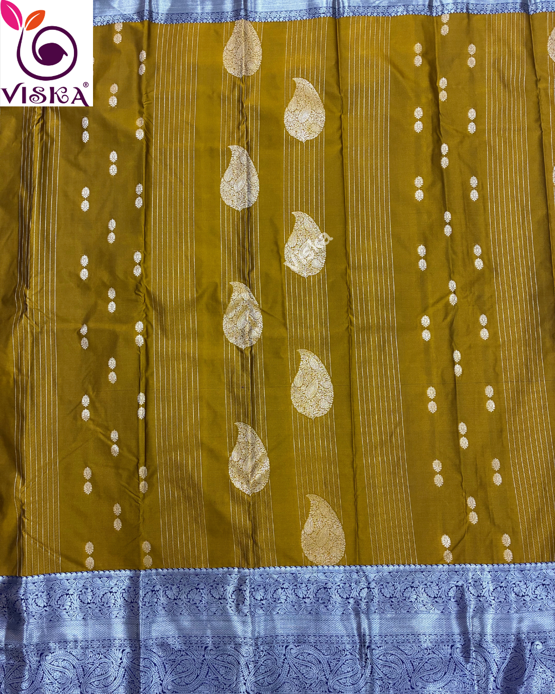 Pure Kanchipuram Soft Silk Saree Mustard Yellow with all-over buttas with Zari woven Border