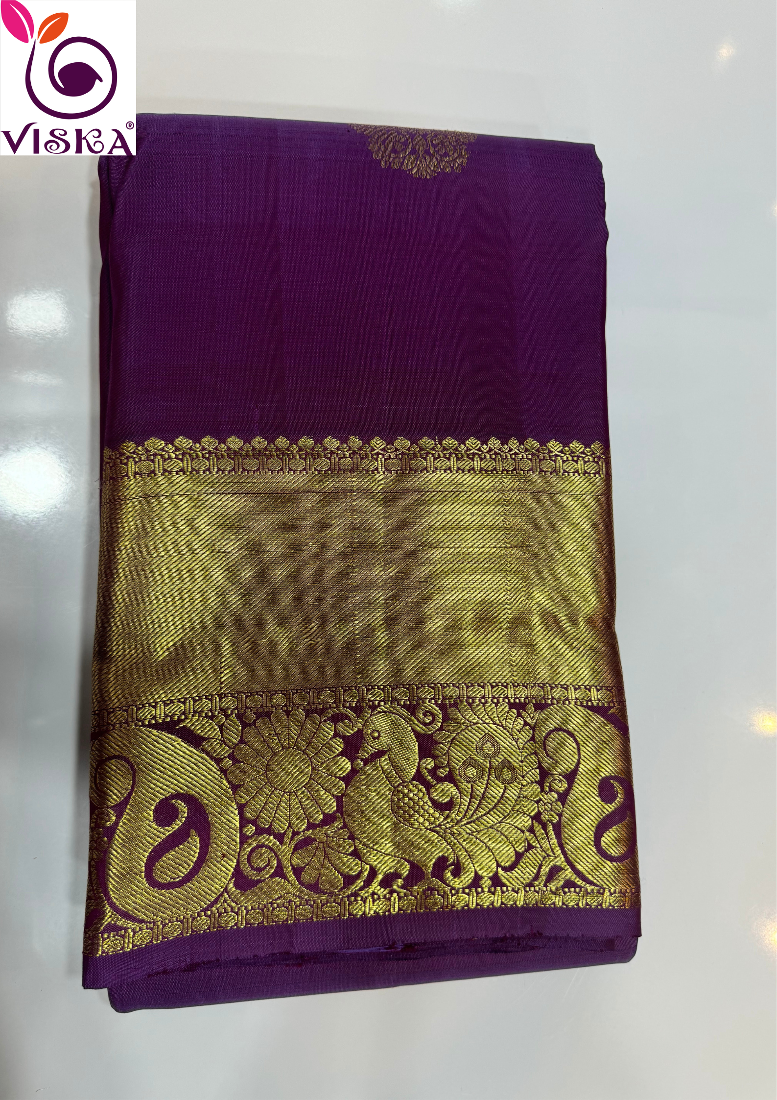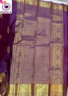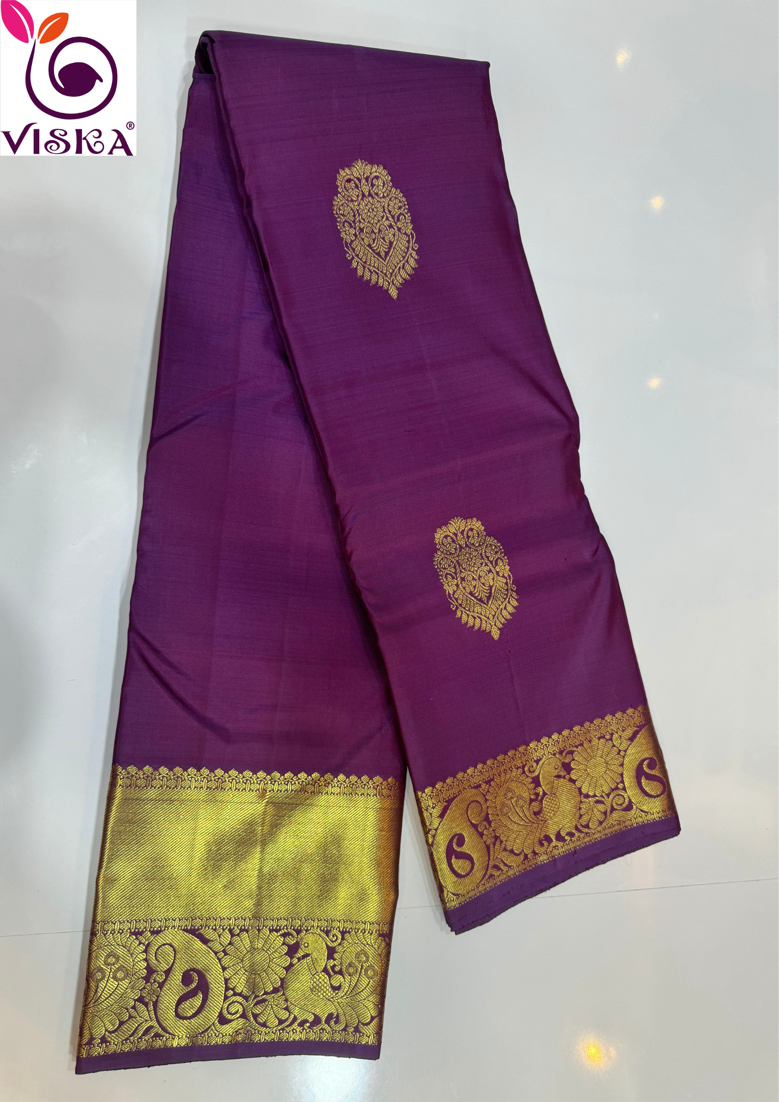 Pure Kanjivaram Silk Saree Dark Purple with Buttas and golden zari border