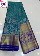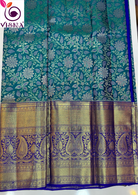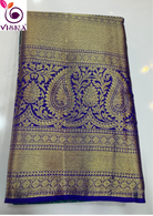 Pure Kanjivaram Silk Saree Dual shade Royal Blue with all-over floral Weaves and golden zari border
