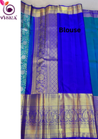 Elevate your traditional wardrobe with our luxurious royal blue Kanjivaram silk saree. Featuring intricate floral weaves and golden zari border detailing, this dual shade saree exudes elegance and sophistication. Complete the look with the matching royal blue blouse.