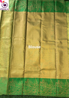 Expertly handcrafted, this Pure Kanjivaram Silk Saree in Parrot Green and Gold is a stunning piece of art. The all-over floral weaves and Dark Green zari woven border add subtle elegance. The rich golden zari Pallu and self-embossed golden blouse make this saree perfect for any occasion.