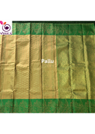 Pure Kanjivaram Silk Saree Parrot Green and Gold with all-over floral weaves and Dark Green zari woven border