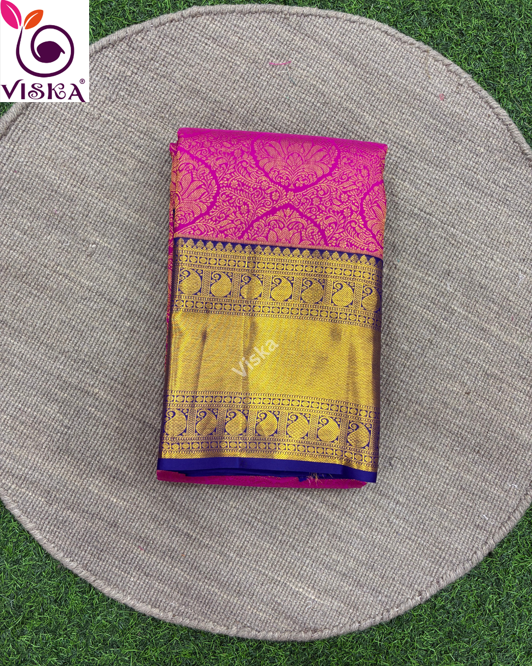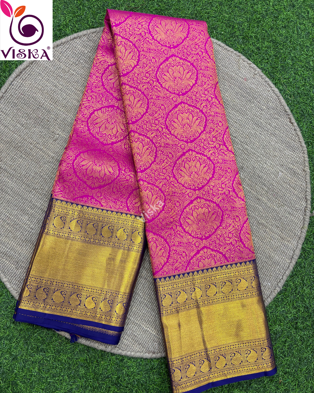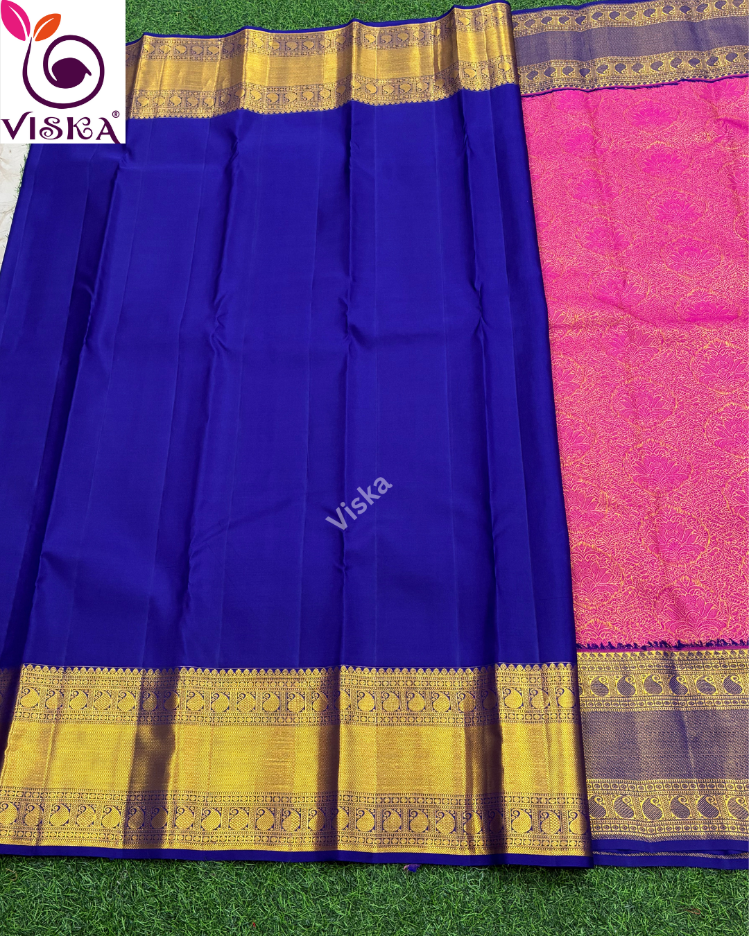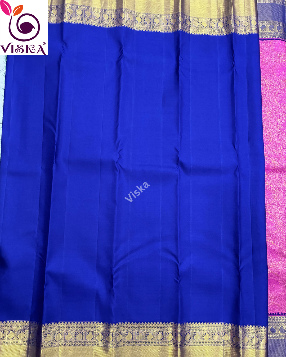Pure Kanchipuram Silk Saree Pink and Royal Blue with all-over motif weaves and zari woven borer
