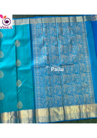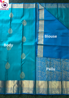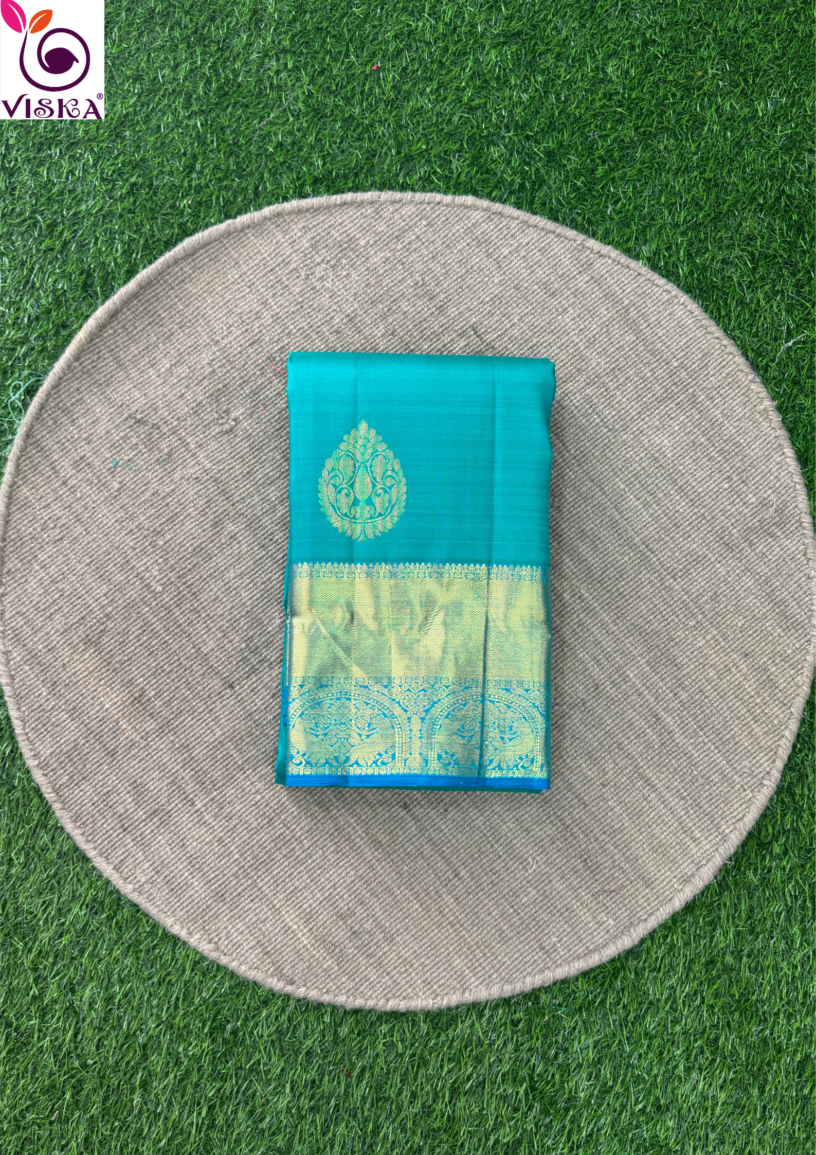 Pure Kanjivaram Silk Saree Rama Green and Blue with all-over buttas and zari woven border