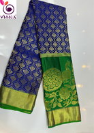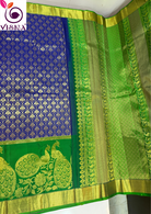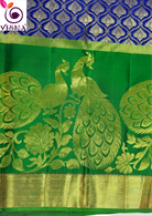 Pure Kanjivaram Silk Saree Violet and Green with Brocade weaves and peacock Motifs