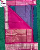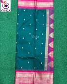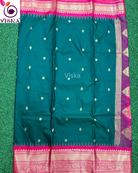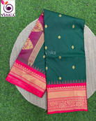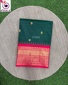 Viska Soft Silk Saree Bottle Green with rich Pallu and Pinkish Red zari woven border