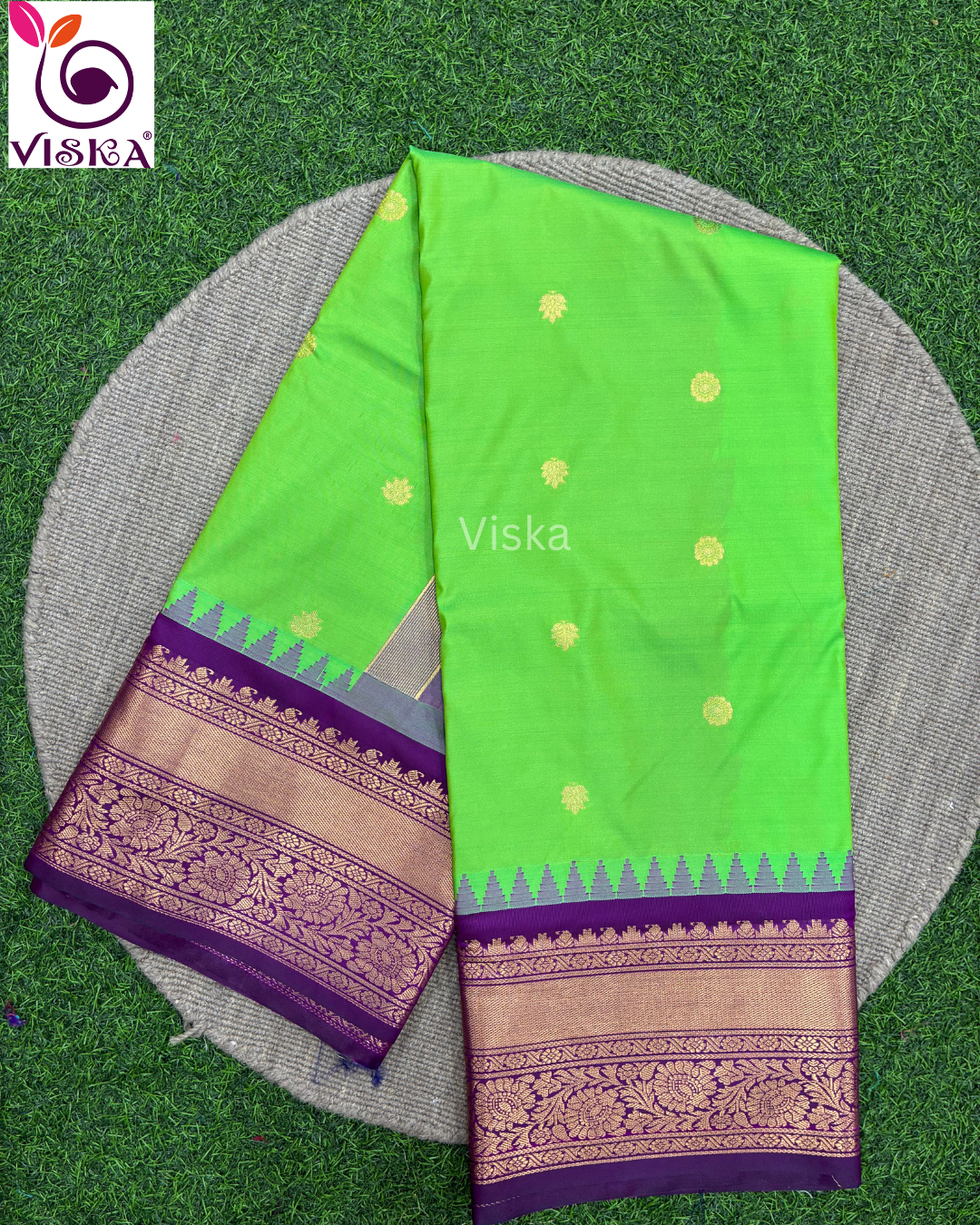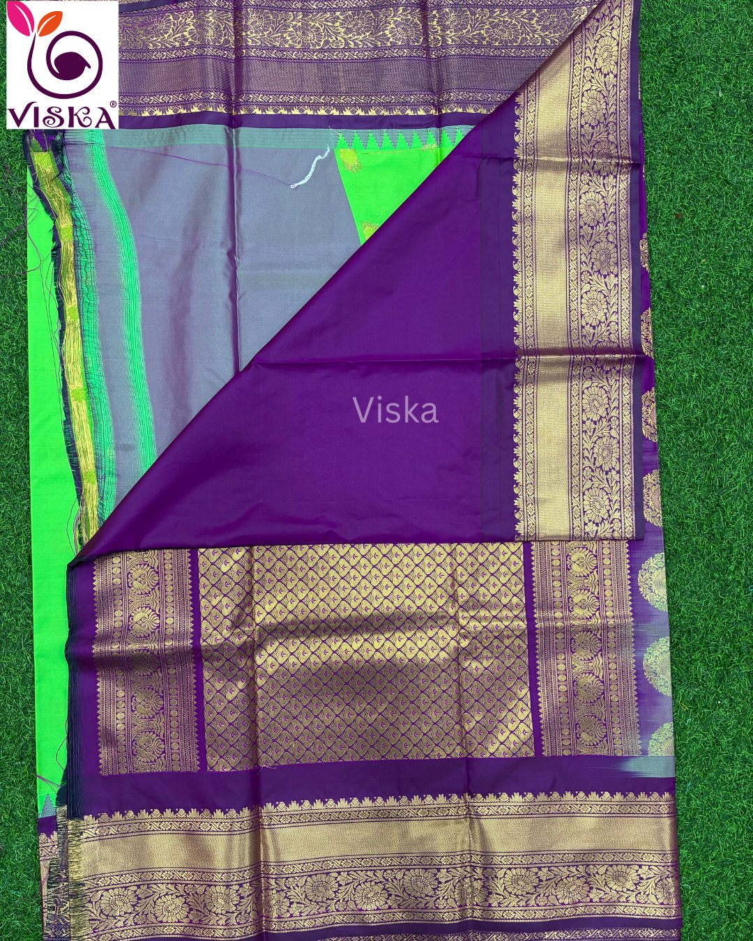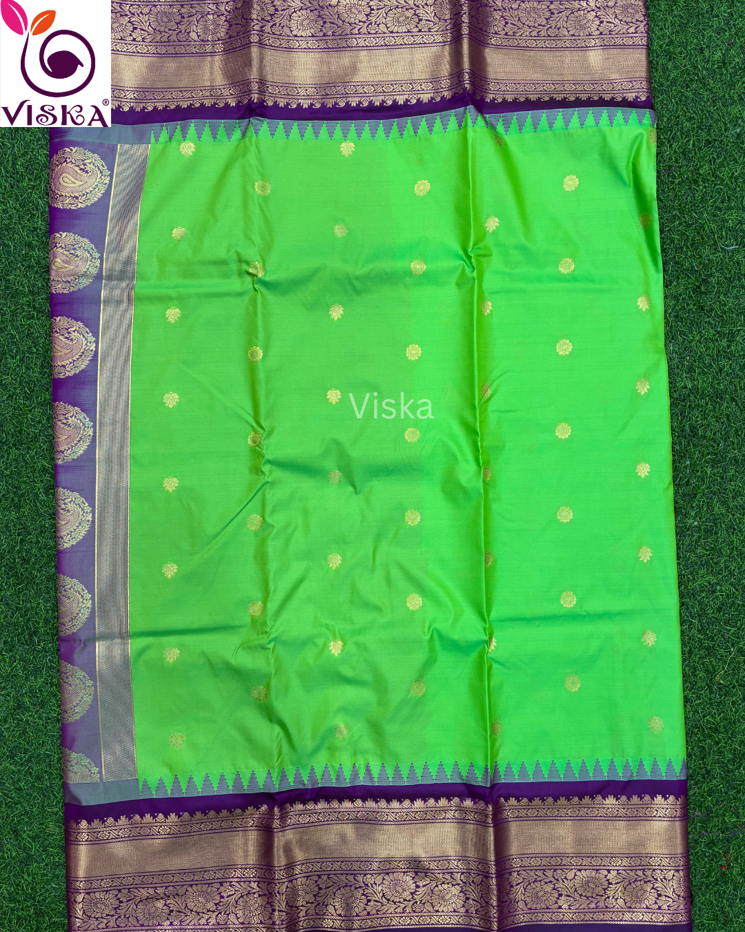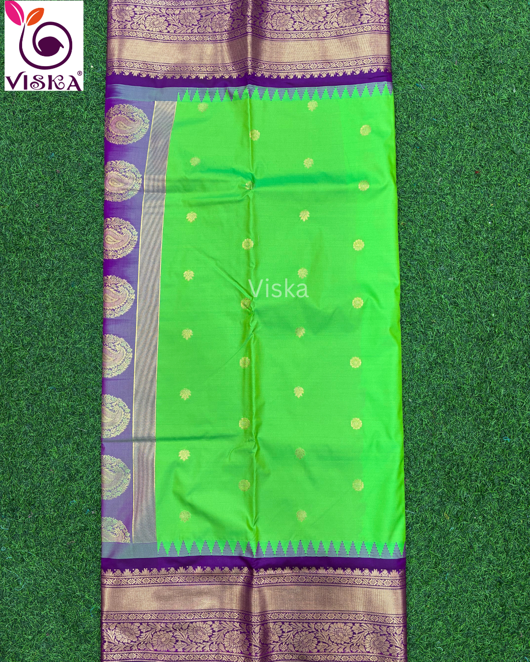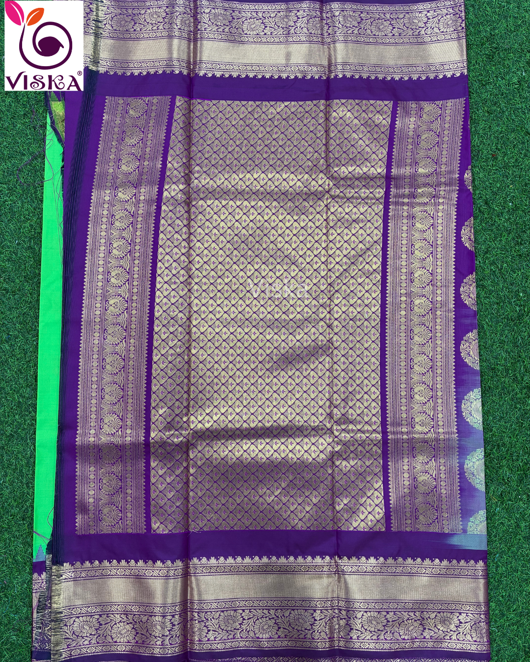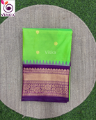 Viska Soft Silk Saree Parrot Green with rich Purple Pallu and zari woven border