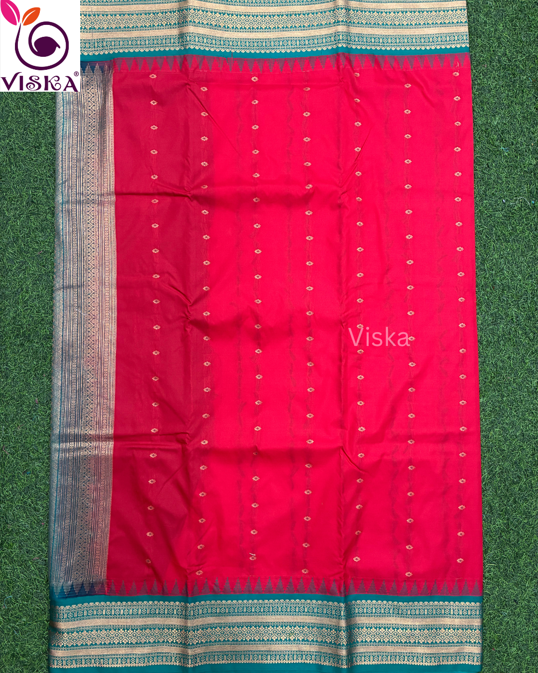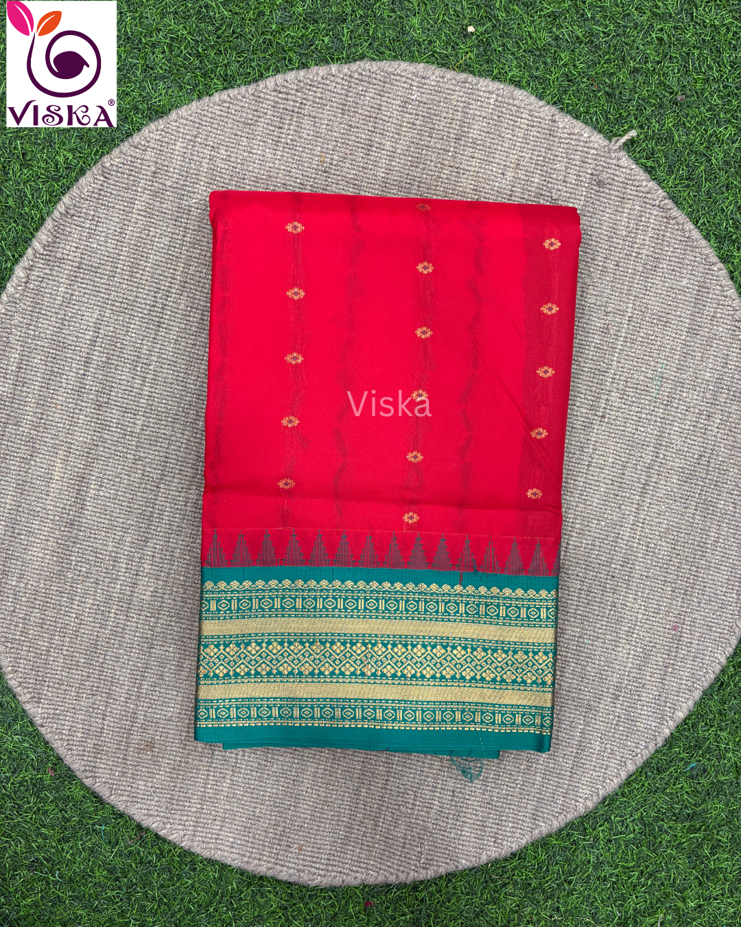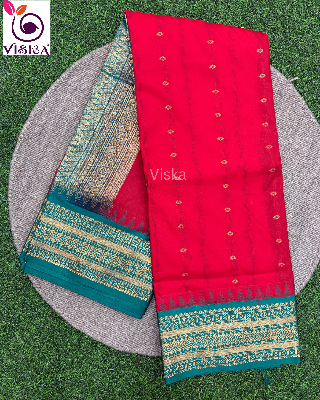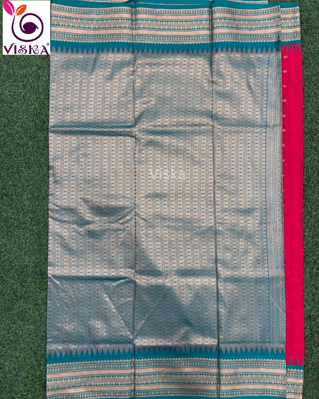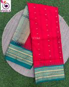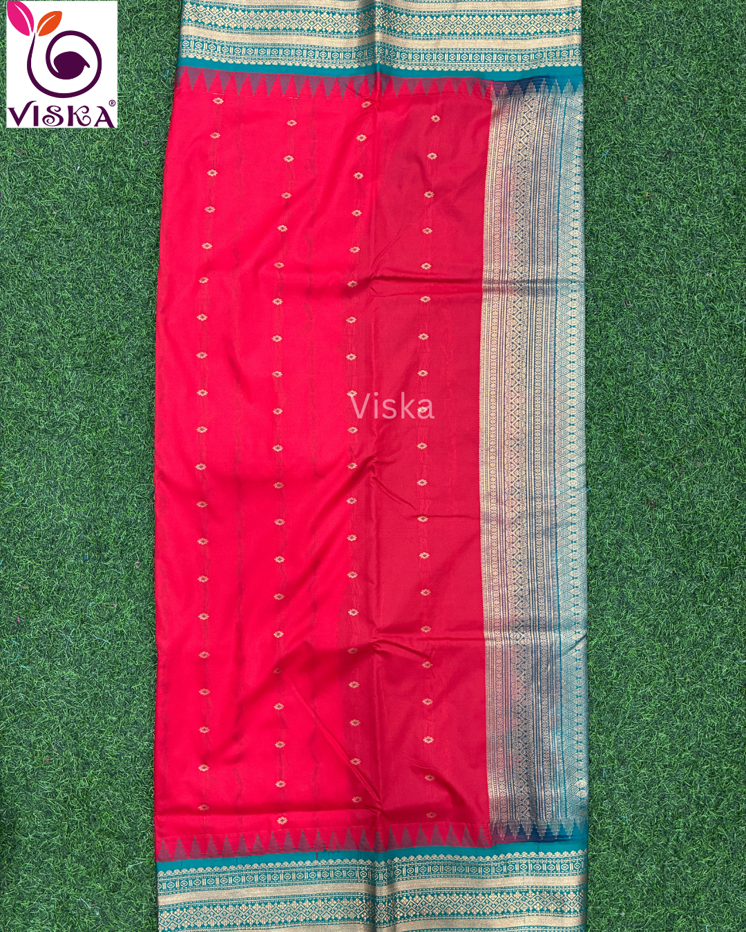 Viska Soft Silk Saree Red with rich Green Pallu and zari woven border